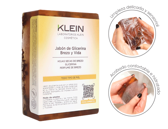 Jabón de glicerina pura con un cálido tono acaramelado y hojas de brezo auténticas en su interior. Su delicado aroma floral y afrutado acompaña una limpieza suave e hidratante.